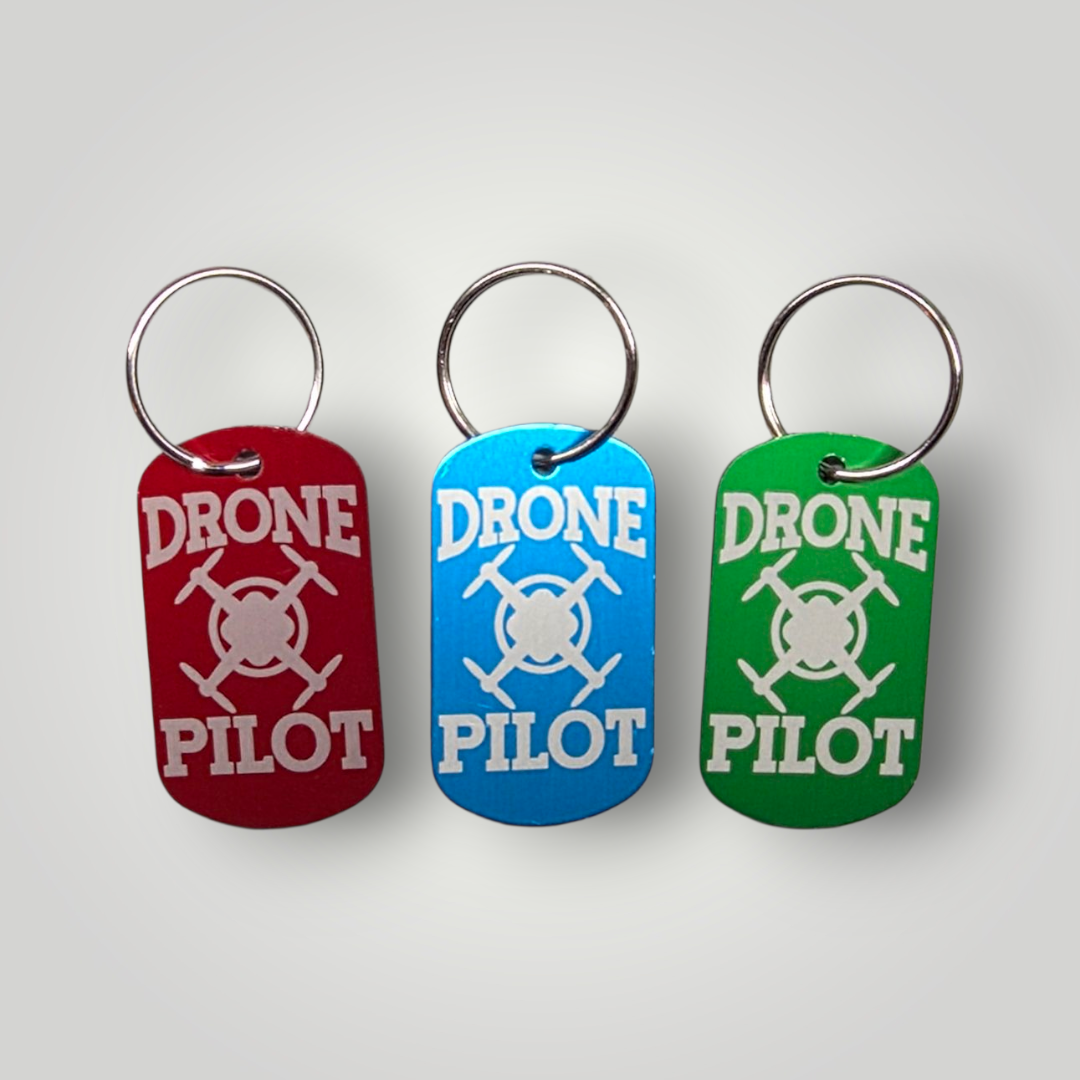 We have some exciting new products coming in 2025. Our first new product will be custom made metal key rings (dog tag style) Choose one of our pre-made drone themed logos or add your custom logo.